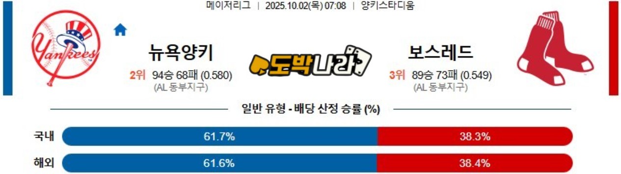 10월02일 07:08 MLB 뉴욕 양키스 vs 보스턴