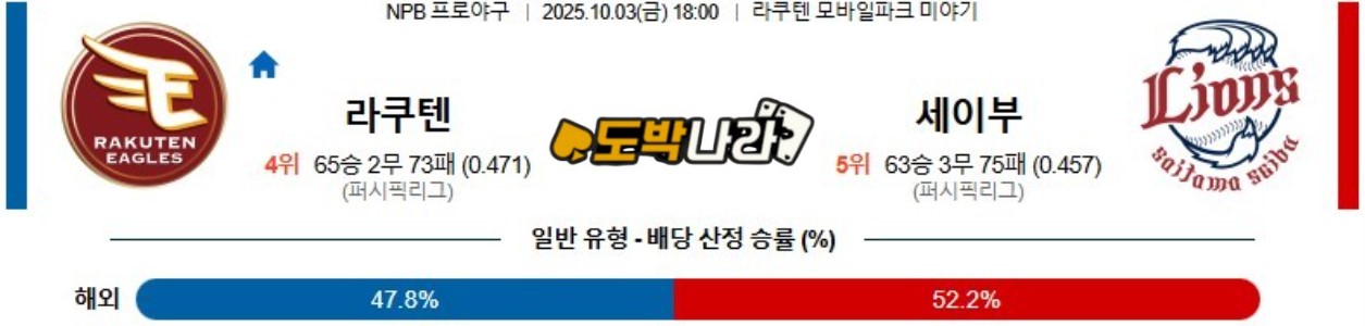 [도박나라]10월03일 18:00 NPB 라쿠텐 vs 세이부