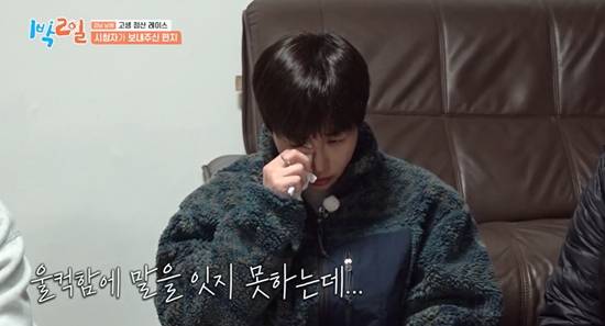 이어 힘든 투병 생활 속에서 '1박 2일'이 큰 위로가 됐다는 내용의 편지를 읽던 딘딘은 결국 감정을 주체하지 못하고 눈물을 보였다.