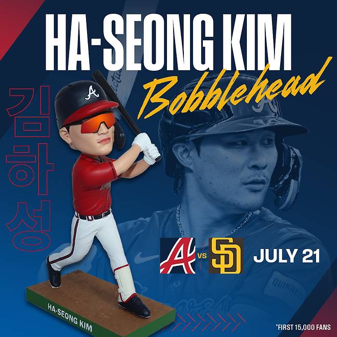 애틀랜타는 17일(한국시간) 7월 22일 샌디에이고와 홈경기에 입장하는 팬 1만 5000명에게 선착순으로 김하성의 바블헤드를 선물한다고 발표했다. 바블헤드 데이는 각 구단의 간판 스타들을 상징하는 이벤트인데 이미 샘플이 나와있다. 그만큼 구단이 김하성 잔류에 공을 들였다는 방증이기도 하다.